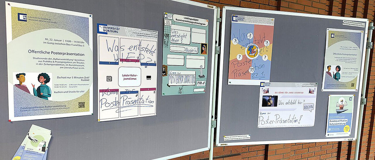 Am 21. Januar 2026 ab 13:00 Uhr stellen Studierende der Zusatzqualifikation Kulturvermittlung ihre Praxiserfahrungen in einer Posterpräsentation im Philosophiegebäude am Campus Hubland Süd vor.