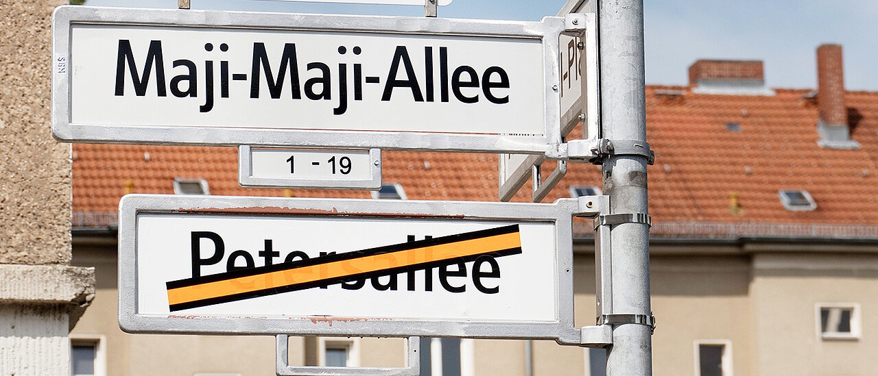 Erst in den letzten Jahren ging die Tendenz dahin, kolonialkritische Signale zu setzen und die Straßen beispielsweise nach antikolonialen sowie antirassistischen Widerstandskämpferinnen und Widerstandskämpfern zu benennen. So wie die ehemalige Petersallee in Berlin: Anna Mungunda (1932-1959) kämpfte gegen die Apartheid in Namibia an. „Maji-Maji“ galt als Schlachtruf im Widerstand gegen die deutsche Kolonialmacht im damaligen Deutsch-Ostafrika (heute Tansania, Burundi, Ruanda und Teile Mosambiks). Während dieses Konflikts von 1905 bis 1907 beteiligte sich unter anderem Carl Peters an Kolonialverbrechen.