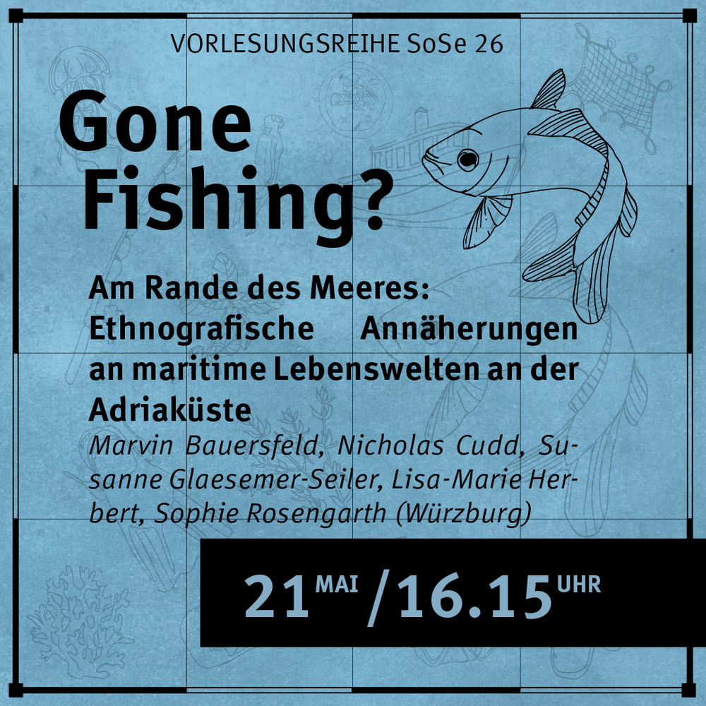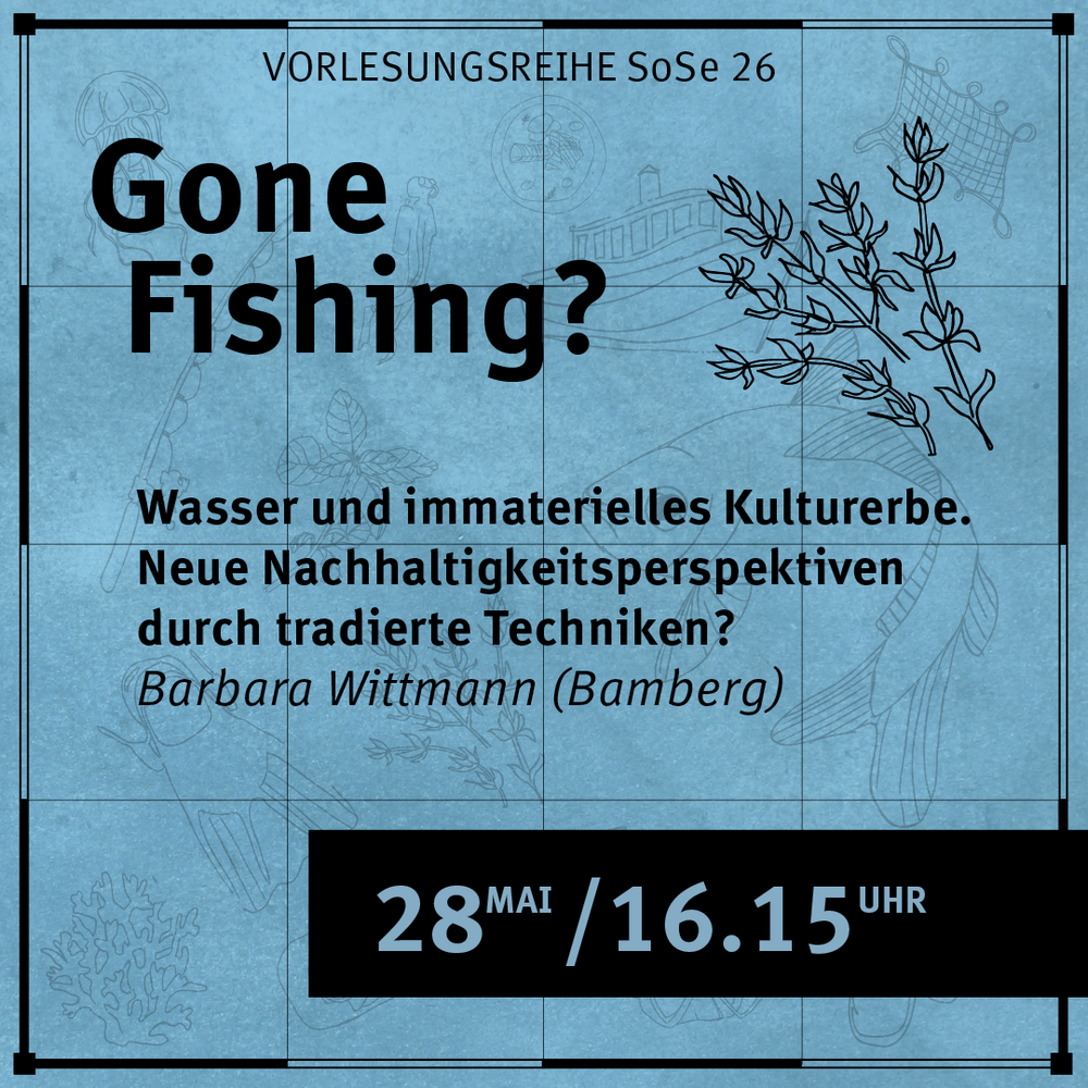 Die Vorlesungsreihe „Gone fishing?“ am Lehrstuhl für Europäische Ethnologie/Empirische Kulturwissenschaft an der JMU nimmt diese komplexen Dynamiken in den Blick. Im Wintersemester 2025/26 sowie im Sommersemester 2026 lädt die Reihe dazu ein, über Vergangenheit, Gegenwart und Zukunft des Wirtschaftens mit Wasser und aquatischen Lebewesen nachzudenken, wobei „Gone fishing“ sowohl mit der Abwesenheit – von Tieren, Biodiversität oder Verantwortung – spielt und zugleich auf die symbolische und kulturelle Bedeutung des Fischens im weitesten Sinne verweist. Die Reihe eröffnet einen Raum, um ökologische, soziale und wirtschaftliche Fragen rund um Wasserressourcen und aquatische Lebensmittelproduktion zu beleuchten und verschiedene Vorträge aus den Kultur- und Sozialwissenschaften betrachten, wie Menschen in unterschiedlichen Kontexten Wasser und aquatische Lebewesen nutzen, transformieren und verstehen. Im Fokus stehen sozial-ökologische Transformationen ebenso wie Umgangsweisen mit dem Gemeingut Wasser und die Vorlesungsreihe reiht sich in das aktuell wachsende Themenfeld der „Blue Humanities“ sowie der Anthropologie des Ländlichen ein.
