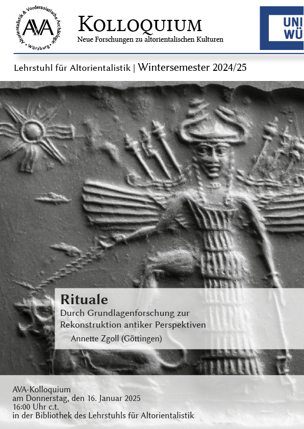 Der Vortrag findet in Präsenz in der Bibliothek des Lehrstuhls für Altorientalistik (Residenzplatz 2, Tor A) statt. Gleichzeitig wird die Möglichkeit geboten, via ZOOM der Veranstaltung beizuwohnen - ZOOM-link: https://uni-wuerzburg.zoom-x.de/j/61522710584?pwd=PL9DwAdvrxazFMnJ3Z3qTlhne5JZ5l.1 (Kenncode: 070579).