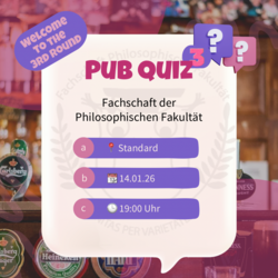 Unser Pub Quiz geht in die dritte Runde! Wieder erwarten euch diverse Kategorien und spaßige Aufgaben.