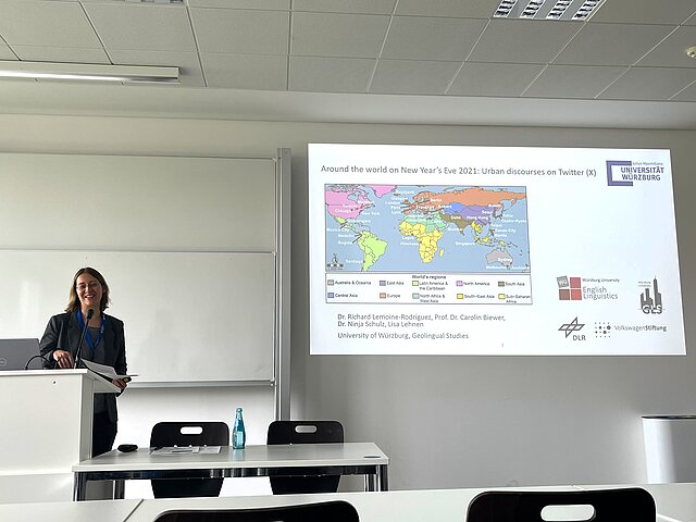 30.07.2025Geolingual Studies were represented with two talks at this year’s conference of the International Association for World Englishes (IAWE26) which took place in Gießen (Germany) on 25-27 July 2025 and was themed “World Englishes through Space and Time”. Carolin Biewer represented the GLS team with a talk entitled “Around the World on New Year’s Eve in 2021: Urban Discourses on Twitter (X)”. Ninja Schulz and Lisa Lehnen presented a paper “Exploring Local Themes and Global Connectedness in Social Media Discourse from London and Edinburgh”. Both talks included findings about the role of English in online communication from and about multilingual and highly complex urban spaces integrating remote sensing, NLP, corpus linguistics and discourse analysis in world Englishes frameworks.
