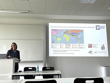 Geolingual Studies were represented with two talks at this year’s conference of the International Association for World Englishes (IAWE26) which took place in Gießen (Germany) on 25-27 July 2025 and was themed “World Englishes through Space and Time”. Carolin Biewer represented the GLS team with a talk entitled “Around the World on New Year’s Eve in 2021: Urban Discourses on Twitter (X)”. Ninja Schulz and Lisa Lehnen presented a paper “Exploring Local Themes and Global Connectedness in Social Media Discourse from London and Edinburgh”. Both talks included findings about the role of English in online communication from and about multilingual and highly complex urban spaces integrating remote sensing, NLP, corpus linguistics and discourse analysis in world Englishes frameworks.