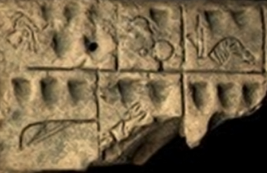 Die frühesten Schriftzeichen aus Mesopotamien wurden aus vereinfachten Bildern (Piktogrammen) entwickelt. Diese Tafel dokumentiert eine Ausgabe von unterschiedlichen Getreidemengen. Das Bild der Harfe meint dabei nicht das